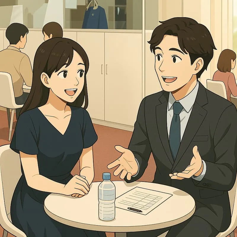 退席時に、相手の目を見て自然な笑顔で「ありがとうございました」と伝える。